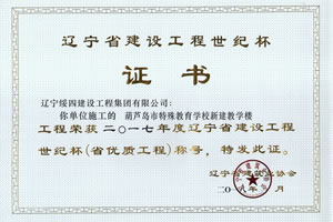 “葫蘆島市特殊教育學校新建教學樓工程”榮獲2017年度遼寧省建設工程世紀杯稱號