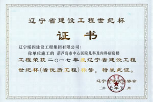 “葫蘆島市中心醫(yī)院兒科及內(nèi)科病房樓”榮獲2017年度遼寧省建設工程世紀杯稱號