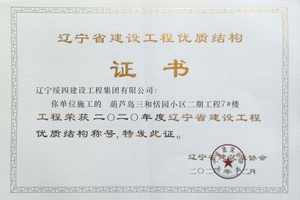 “葫蘆島三和恬園小區(qū)二期工程7#樓”榮獲2020年度遼寧省建設工程優(yōu)質(zhì)結(jié)構稱號