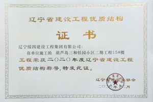 “葫蘆島三和恬園小區(qū)二期工程15#樓”榮獲2020年度遼寧省建設工程優(yōu)質(zhì)結(jié)構稱號