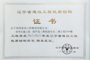 “葫蘆島三和恬園小區(qū)二期工程29#樓”榮獲2020年度遼寧省建設工程優(yōu)質(zhì)結(jié)構稱號