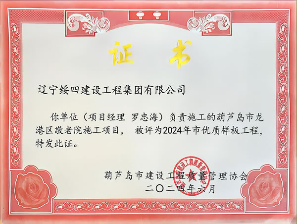 葫蘆島市龍港區(qū)敬老院施工項(xiàng)目被評為2024年市優(yōu)質(zhì)樣板工程