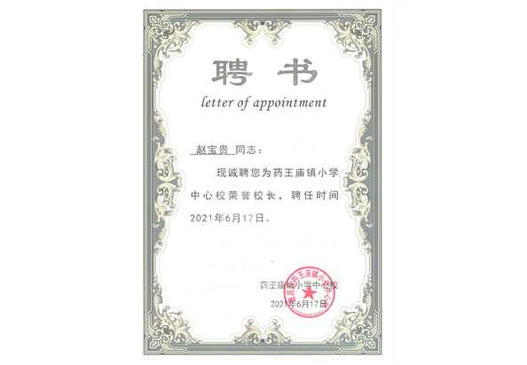 藥王廟鎮(zhèn)小學(xué)中心校榮譽校長