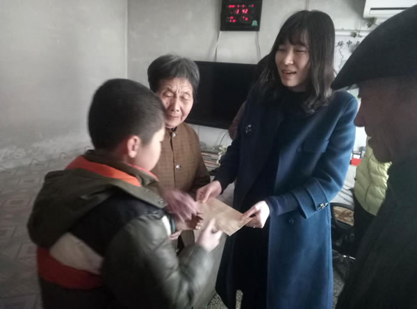 2018年3月6日,集團(tuán)工會(huì)主席劉霜、造價(jià)部部長明輝、財(cái)務(wù)部呂賀及實(shí)驗(yàn)小學(xué)趙瑞如老師等四人來看望慰問實(shí)驗(yàn)小學(xué)貧困學(xué)生信博,并送去米、面、油等生活用品及助學(xué)金。