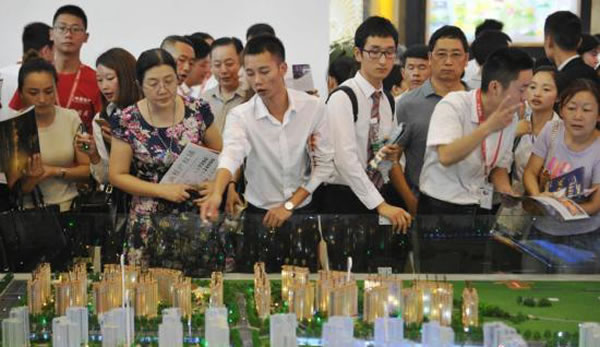房交會工作人員向看房咨詢的民眾介紹情況
