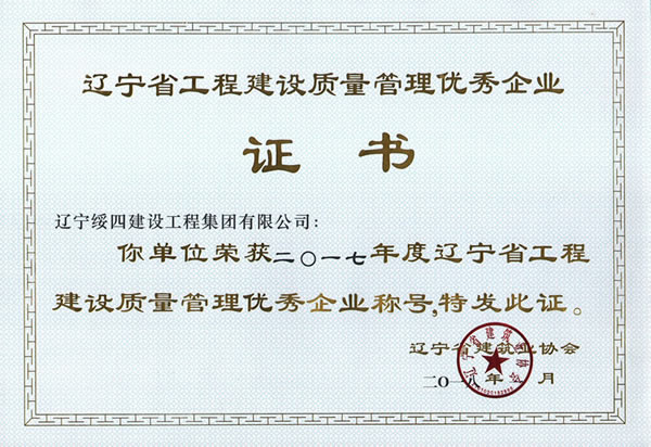 遼綏四榮獲“遼寧省建筑業(yè)優(yōu)秀企業(yè)”、“ 遼寧省工程建設質量管理優(yōu)秀企業(yè)”等榮譽