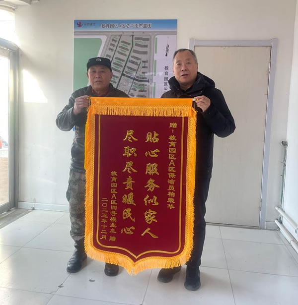 近日,三和物業(yè)A區(qū)業(yè)主接待服務(wù)中心傳來暖心喜訊,公司保潔柏榮華憑借日復(fù)一日的貼心服務(wù)與盡職盡責(zé)的工作態(tài)度,贏得了所服務(wù)樓棟業(yè)主的高度認(rèn)可與誠摯感謝,四號樓業(yè)主特意將一面印著“貼心服務(wù)似家人 盡職盡責(zé)暖民心”的錦旗送到柏榮華手中,以此表達(dá)對他工作的肯定與贊許,也為整個物業(yè)服務(wù)團(tuán)隊注入了滿滿的溫暖與動力。