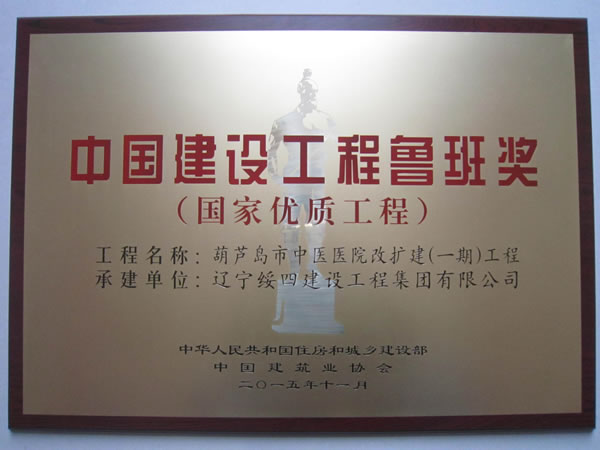 2015年11月17日在北京釣魚臺國賓館召開了“2014~2015年度中國建設(shè)工程魯班獎”表彰大會,集團(tuán)鐘雷副總經(jīng)理代表公司參加了此表彰大會,由遼寧綏四建工集團(tuán)承建的葫蘆島市中醫(yī)醫(yī)院改擴(kuò)建(一期)工程榮獲“2014~2015年度中國建設(shè)工程魯班獎”獎項。