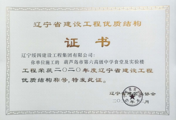 “葫蘆島市第六高級(jí)中學(xué)食堂及實(shí)驗(yàn)樓”榮獲2020年度遼寧省建設(shè)工程優(yōu)質(zhì)結(jié)構(gòu)稱號(hào)
