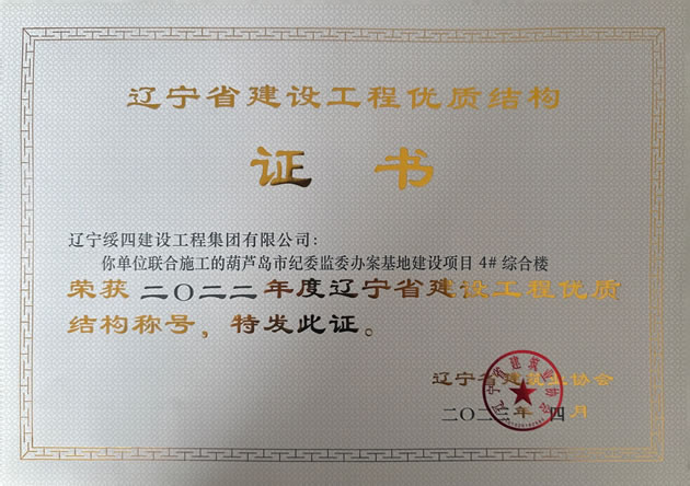 葫蘆島市紀委監(jiān)委辦案基地建設項目 4# 綜合樓榮獲 2022年度遼寧省建設工程優(yōu)質(zhì)結(jié)構稱號