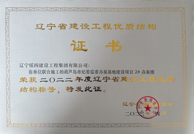 葫蘆島市紀委監(jiān)委辦案基地建設(shè)項目 2# 辦案樓榮獲2022年度遼寧省建設(shè)工程優(yōu)質(zhì)結(jié)構(gòu)稱號