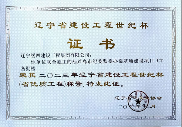 | 葫蘆島市紀(jì)委監(jiān)委辦案基地建設(shè)項(xiàng)目3#備勤樓 榮獲2023年遼寧省建設(shè)工程世紀(jì)杯(省優(yōu)質(zhì)工程)稱號(hào) |