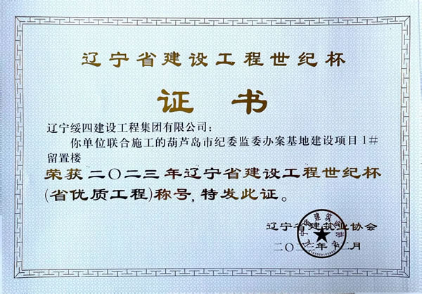 葫蘆島市紀委監(jiān)委辦案基地建設(shè)項目1#留置樓 榮獲2023年遼寧省建設(shè)工程世紀杯(省優(yōu)質(zhì)工程)稱號